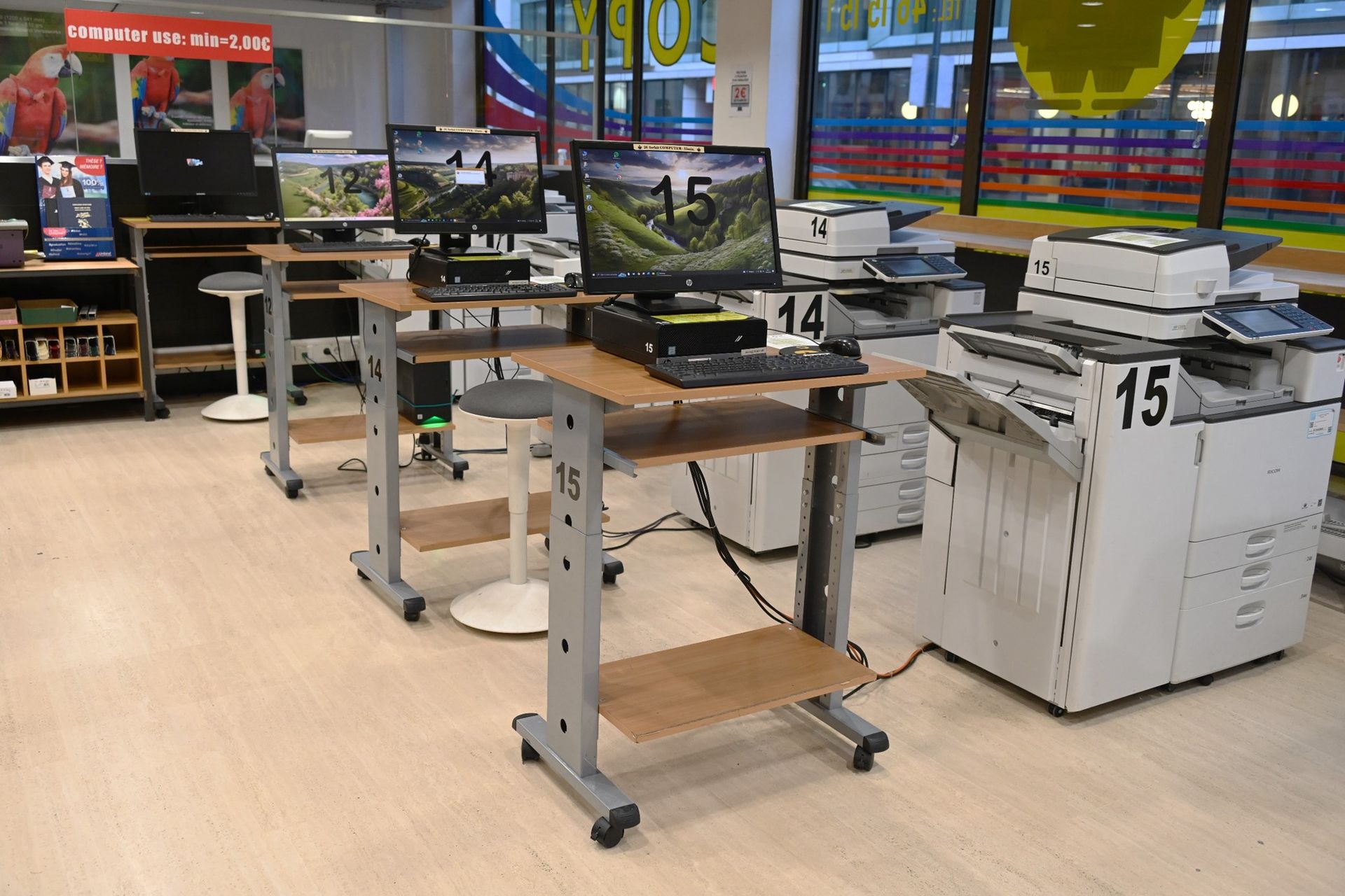 Un espace de plus de 100m2 en plein centre de Luxembourg qui vous permettra de travailler sur des postes informatiques (windows ou apple), connectés online, avec imprimantes et un espace de finition pour vos documents imprimés. La numérisation de document jusqu’au format A3 ne vous posera aucun problème. Vous démarrez une activité au Luxembourg ? Alors c’est peut-être l’espace de travail dont vous avez besoin pour traiter tous les aspects administratifs et vous lancer sans investir dans des espaces coworking par exemple ? Au prix locatif du m2 de bureau à Luxembourg, nous sommes très (très) concurrentiel !