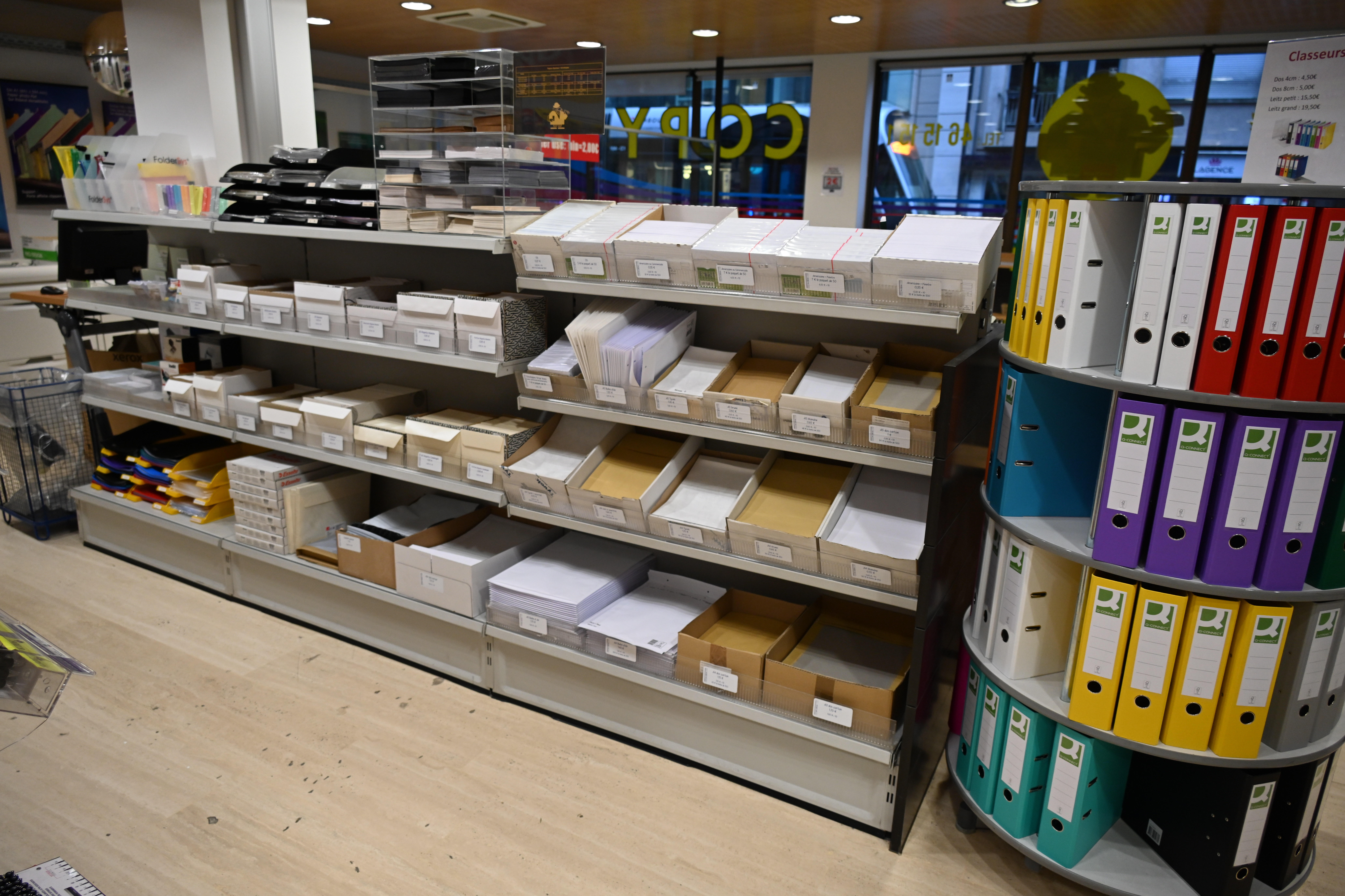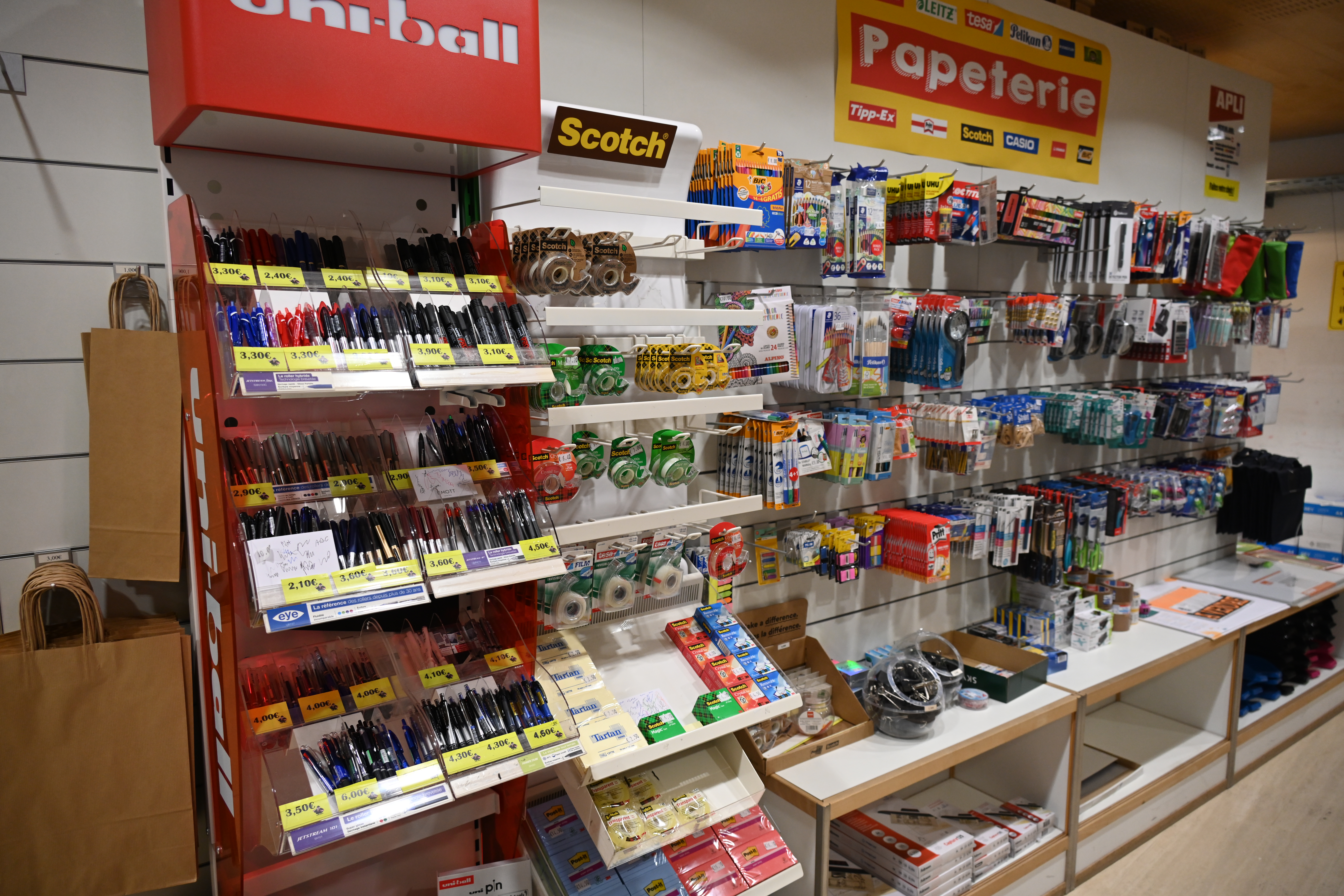 Dans notre papeterie, vous trouverez un large assortiment de papiers, enveloppes, bics, crayons, classeurs, fardes, matériel scolaire et tous les petits outils indispensables en bureautique.